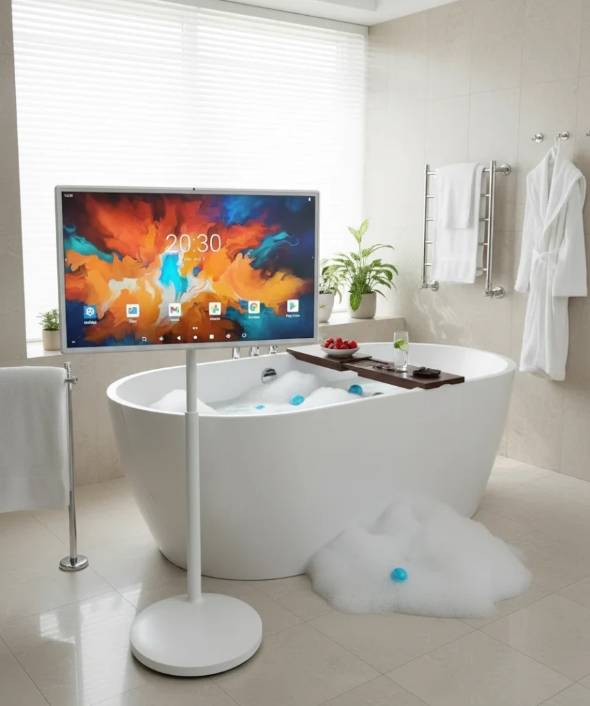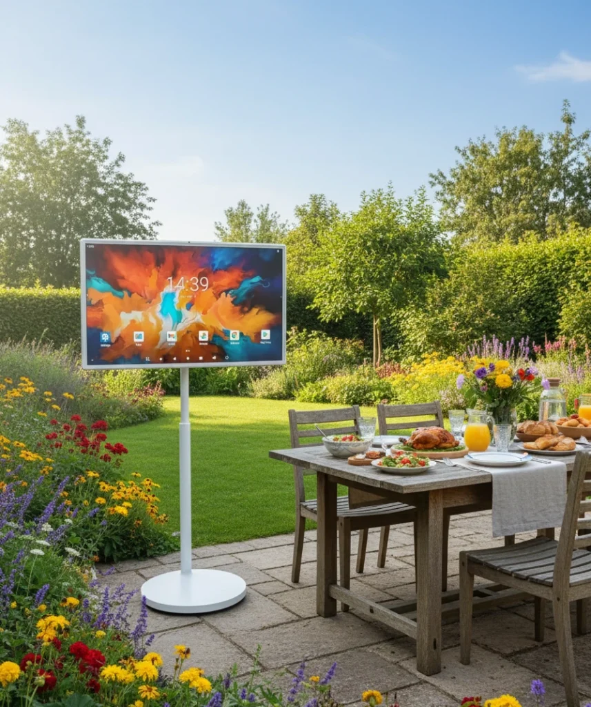 From your living room to the garden, or even next to the bath, our portable smart screen adapts to your lifestyle. Move it with ease and enjoy vibrant visuals, powerful sound, and smooth Android performance wherever you are.